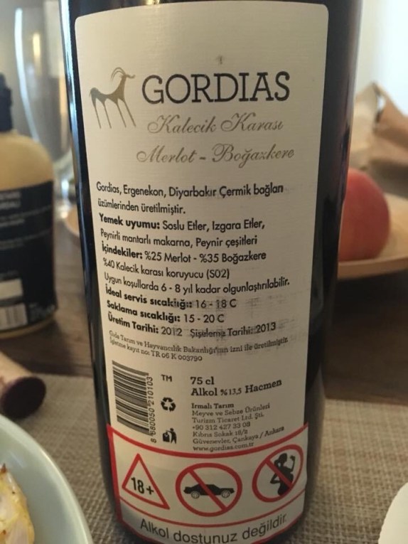 Gordias 2012 Kalecik Karası, Merlot, Boğazkere : Gordias is a boutique winery situated near Ankara that makes wonderful wines and is surprisingly not very well known.