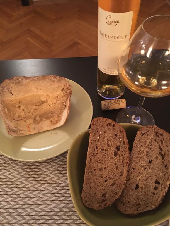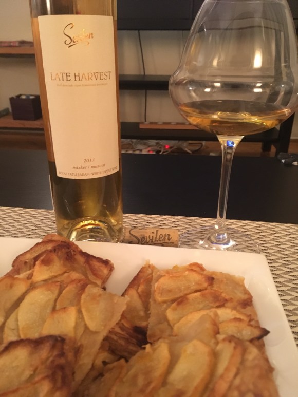 Must be a pretty good match to foie gras of course but this time I tasted it with a Turkish cheese called Obruk Tulumu. This cheese stinks beautifully (remember, I’m French…) and is part of the blue cheese family. A perfect match! Then I had a succulent piece of apple tart made by my wife. Again a perfect match!