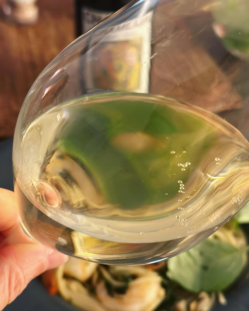 Bottled without filtering or clarification. Grapes were pressed using the champagne method and the must was aged on its lees with carbon ice for 10 days.